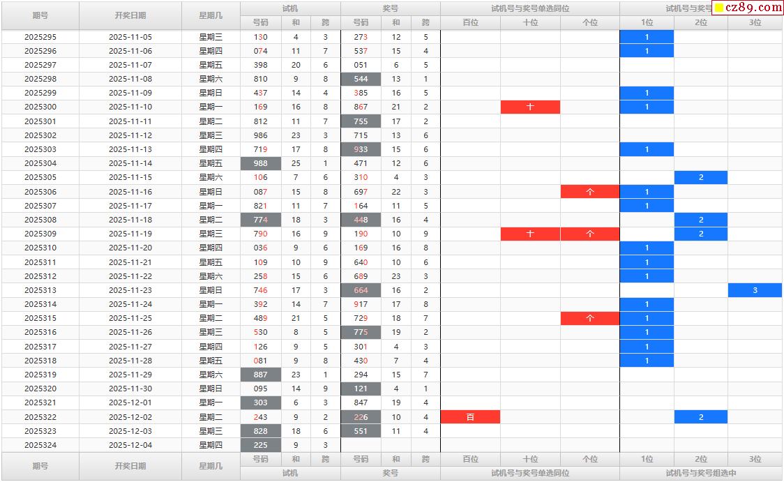 > 25年324期福彩3D试机号走势图表分析