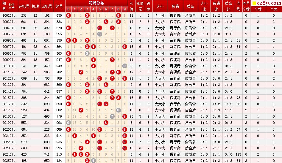 第071期福彩3D历史同期对比
