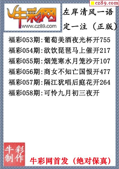 > 26年058期左岸清风一语定一注(原创正版)